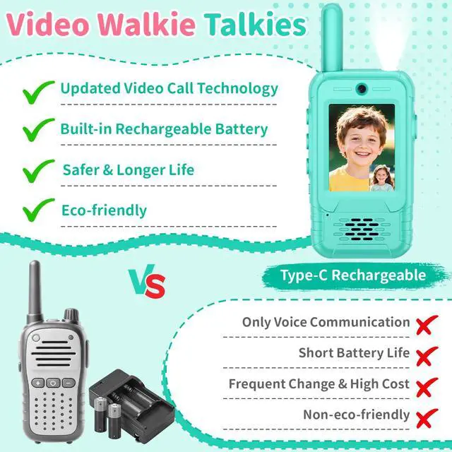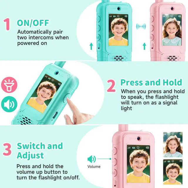 Safe & Easy to Use: This video walkie talkies for kids, uses 1v1 single-channel encryption and automatically pairs to the same channelsimply turn it on to talk! No WiFi or any setup required. Children are less likely to accidentally switch channels and lose contact, and parents can monitor their child's location in real time. The walkie-talkie also has indicator lights to remind you when you are communicating, making it safer in dimly lit environments. kids video walkie talkie transform playtime into fun-filled parent-child interactions. They are the ideal outdoor toys for kids.