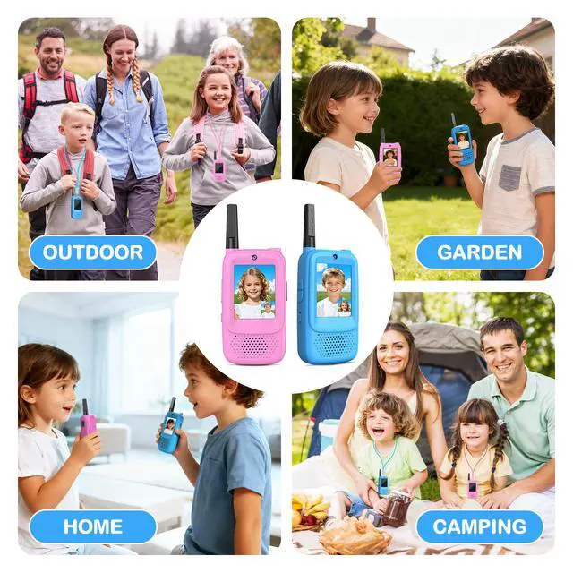 2 Way Radio Long Range Transmission: Our kids walkie talkies with camera have a range of up to 100M in indoor/neighborhood conditions and 400M in open outdoor conditions, which is a good helper for communication upstairs and downstairs, courtyards, tourism, shopping malls, and outdoor activities, covering a wide range of scenarios