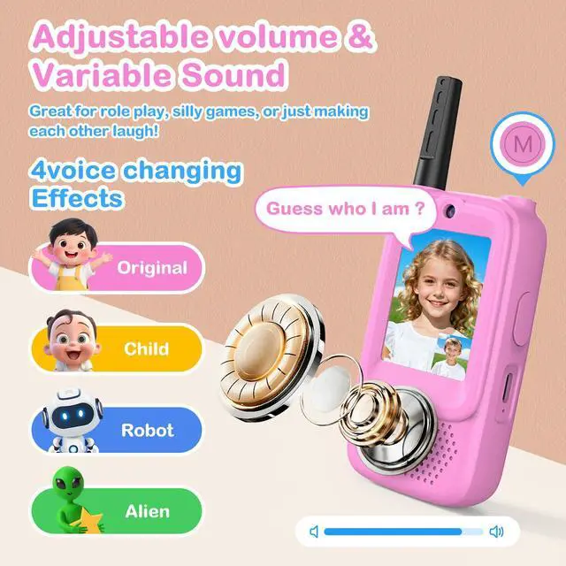 Hilarious Voice Changer Modes: Vilicert's walkie talkie for kids features in with 4 voice effects (original, child, robot, Alien) and fun video filters to spark creativity perfect for role-playing, silly games, and turning every conversation into an entertaining mini-show