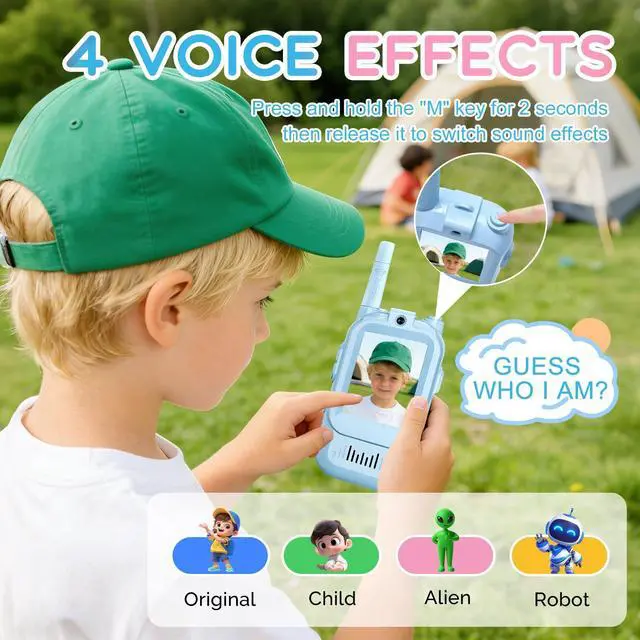 4 Magic Voice ChangerEnjoy the fun! Long press on the "M"key to switch the video walkie talkies between Original/Child/Alien/Robot voicesendless giggles for little adventurers! Crisp sound with adjustable volume, plus clear HD video so kids chat and see each other, making playtime super engaging.