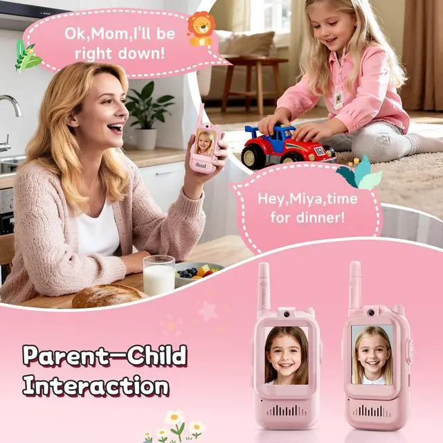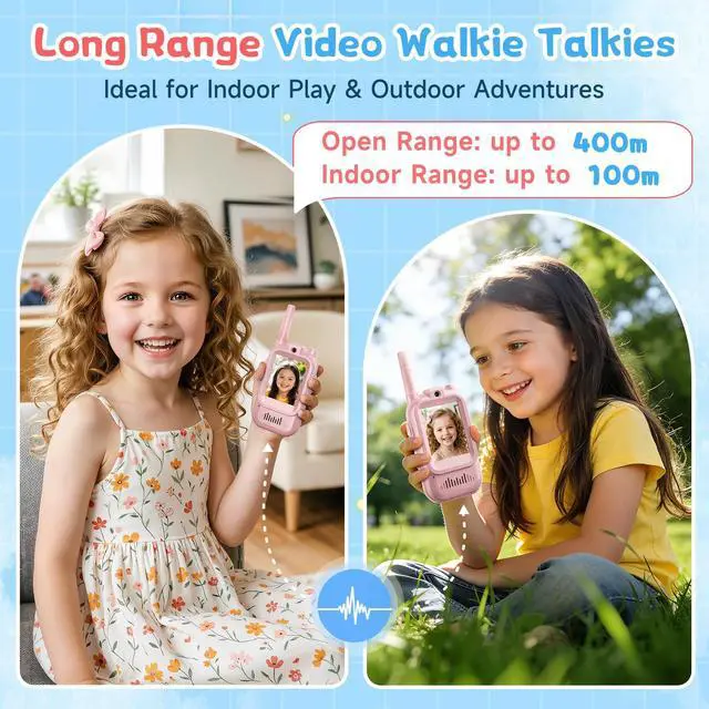[Video Walkie Talkies for Kids]: Unlike regular kids walkie talkies, these 2-in-1 video walkie talkies come with a built-in HD camera and screen which enhance video chat face-to-face in real time, perfect for indoor outdoor play, camping, or park trips. These kids video walkie talkies truly bring conversations to life.