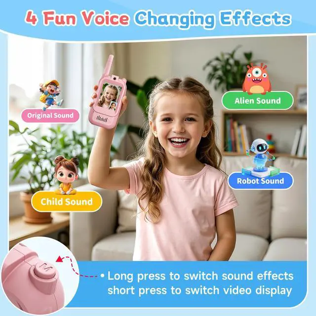 [Fun Voice Changer for Playtime]: These walkie talkies for kids feature 4 silly voice modes (normal, child, monster, male) that make every conversation a game. Advanced clear voice technology ensures that our child's voice is always heard loud and clear, making them fantastic kids outdoor toys for imaginative adventures.