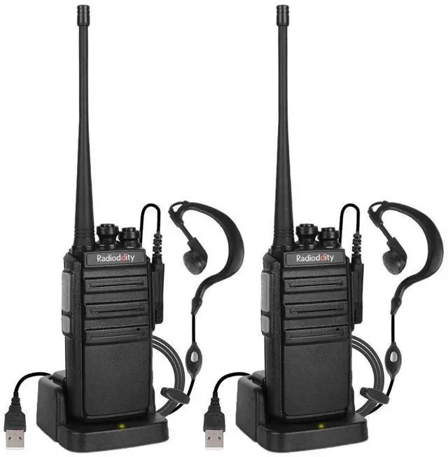 Built-In Media 2 Radioddity GA-2S Two Way Radios, 2 Acoustic Earpieces with Mic, 1 USB Desktop Rapid Charger, 2 Lithium-Ion Batteries