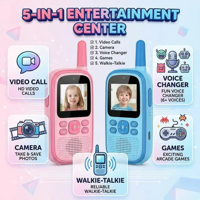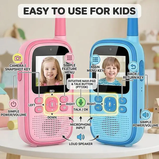 Video Walkie Talkies for Kids Kids Walkie Talkies 2 Pack Update Photo Taking Function, 1000 Feet Range, Fun Toys for Indoor Play, Camping, Hiking, Travel Birthday for Boys and Girls (Blue/Pink)