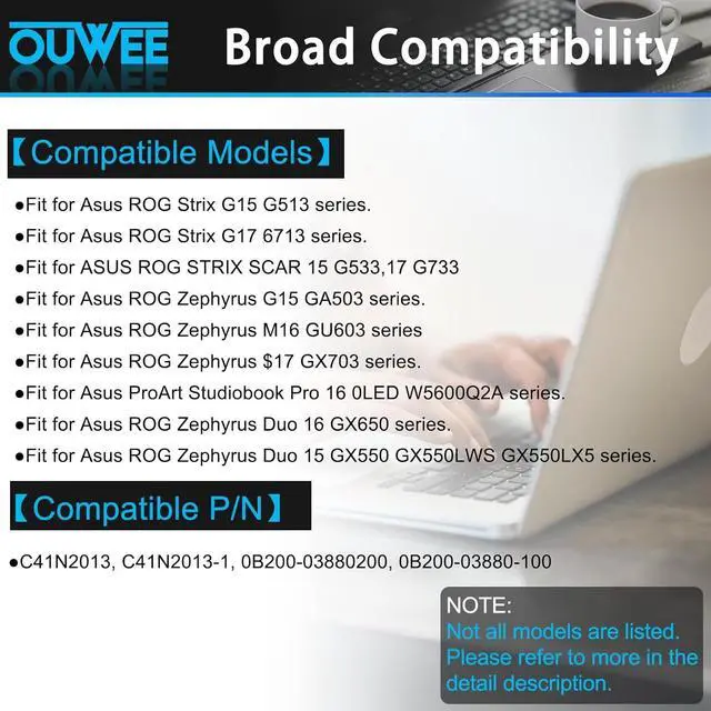 Fully compatible and high stabilityFit for TUF Gaming (A15 FA507, F15 FX507), TUF Gaming (A17 FA707, F17 FX707), ROG Zephyrus (G15 GA502 GA503, M16 GU603, S17 GX703), ROG Strix (G15 G513, G17 G713) series. ROG Strix Scar15 G53317 G733), ROG Zephyrus Duo (15 GX550, 16 GX650), ProArt Studiobook 16 OLED series.