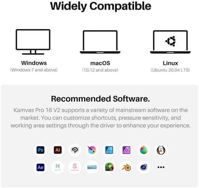 Please note: Kamvas Pro 16 V2 is not a standalone product (no touch screen)