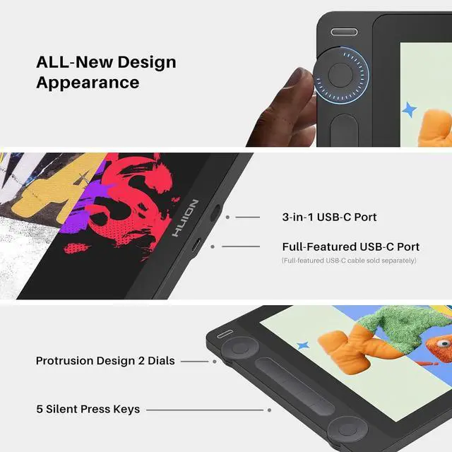 Stable & Convenient Connection: Kamvas 13 (Gen 3) computer graphics tablets retain a convenient dual-interface design with optimized connections. You can also use your own full-featured USB-C to USB-C cable for reliable PC/laptop/Android connectivity.