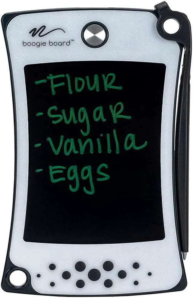 Jot Pocket is the best-selling reusable writing tablet with a 4.5" screen that's perfect for taking your lists, notes, and doodles on the go or for compact spaces! Because the writing tablet uses patented technology, you can write with the included stylus or any scratch free instrument. When you're ready to erase, just push the button and the writing tablet clears itself using QuickClear technology. No more erasing or wiping.