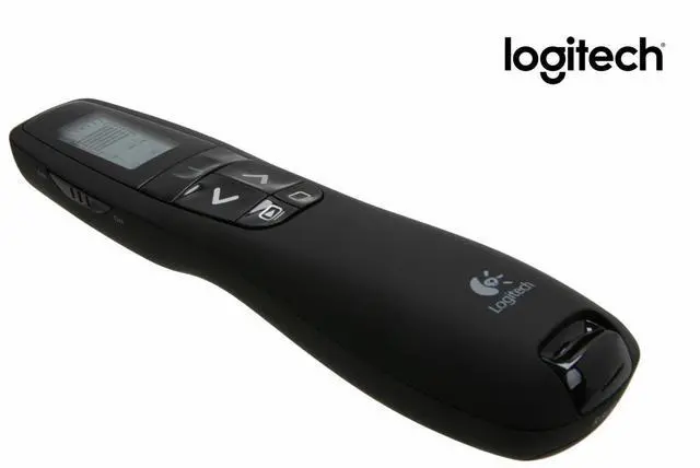 The Logitech® professional presenter R800 has a wireless range of up to 100 feet with a unique green laser pointer. It also features a long battery life, easy-to-use controls and an LCD screen. Plug-and-play technology doesn't require software installation, which makes it easy to set up.