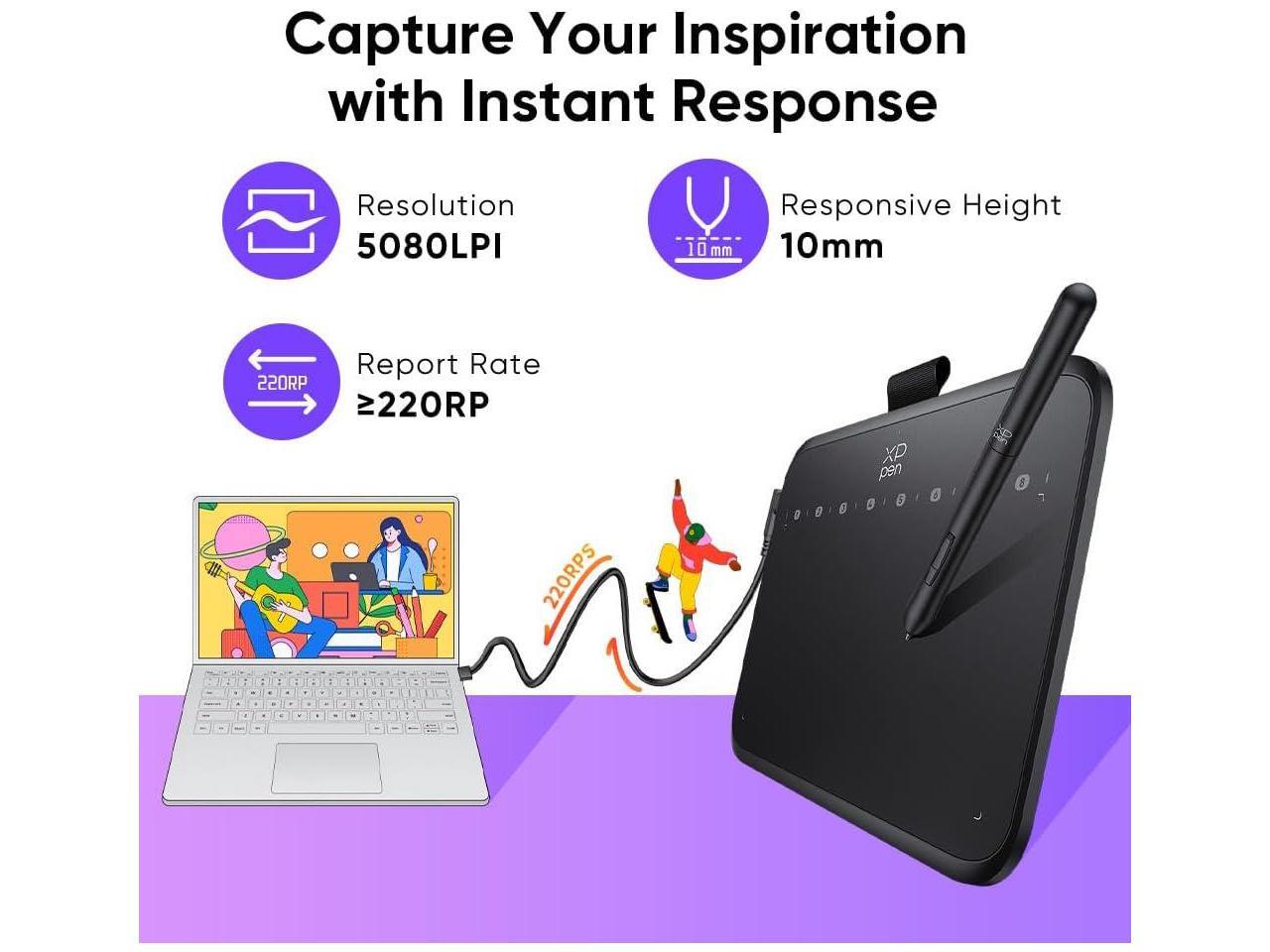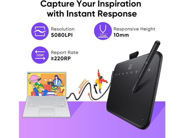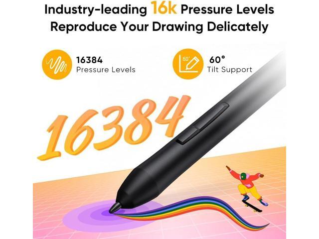 - ndustry-leading 16K Pressure Levels: The graphic drawing tablet adopts the groundbreaking 16K pressure sensitivity levels, ensuring your every stroke is rendered smoothly, precisely, and naturally. By supporting 60° tilt, the Deco 640 drawing tablet makes it easy to draw shaded strokes or rich line variations. Drawing on a tablet is as natural as drawing on paper