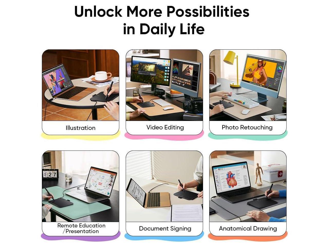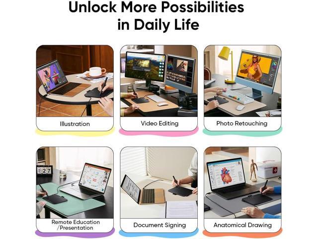 - Ergonomic Design: The ultra-narrow and curved edge design provides a spacious drawing area and reduces wrist fatigue. Together with 8 soft shortcut keys and a handy drawing pen, you can easily master the skills of drawing on a tablet with efficiency and comfort. Even long-time creation is not a burden