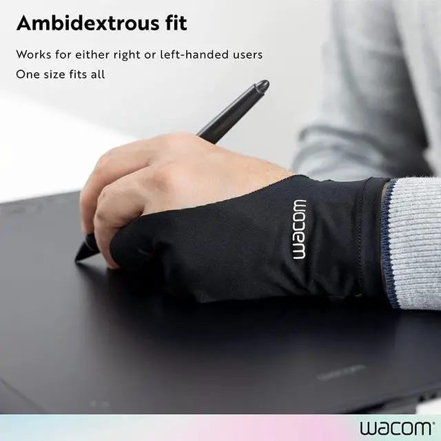 Wacom Drawing Glove, Two-Finger Artist Glove for Drawing Tablet Pen Display, 90% Recycled Material, eco-Friendly, one-Size (3 Pack)