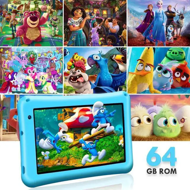 BISAIKASOW Kids Tablet 7 inch, Android 13, 8GB RAM 64GB ROM Expandable, Octa-Core, 5800mAh Battery, Parental Control, WiFi, Dual Camera, Preloaded Educational Apps, with Drop-Proof Case (Blue)