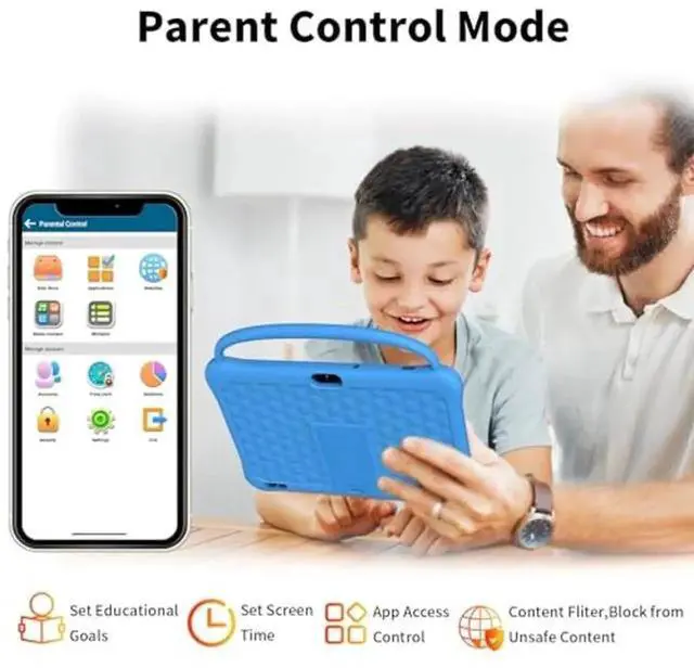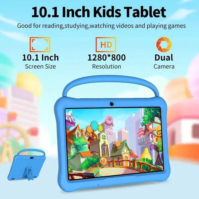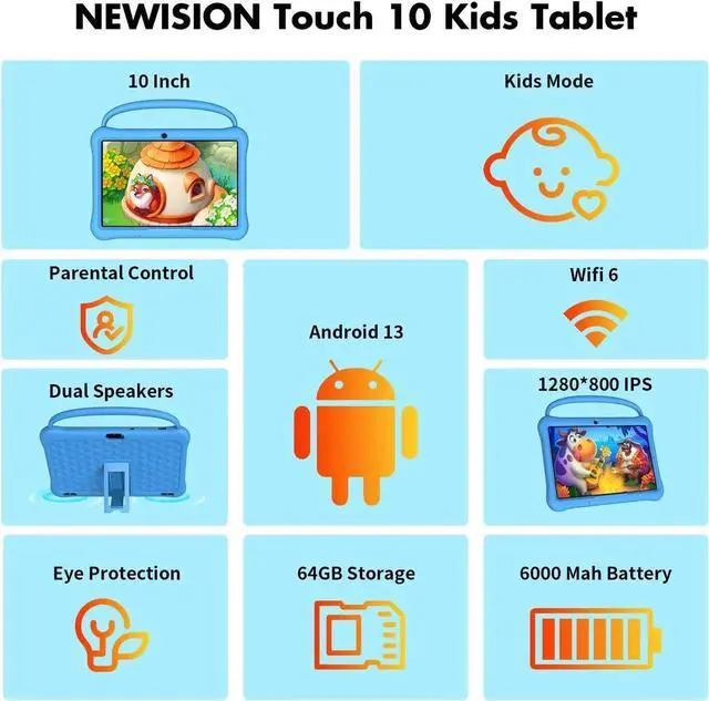NEWISION 10 inch Kids Tablet, Android 13 Tabletas for Kids 64GB, Large HD IPS Display, iWawa Pre Installed, Parental Control, Educational Games, Toddler Tablets with Case, WiFi, Bluetooth (Blue)