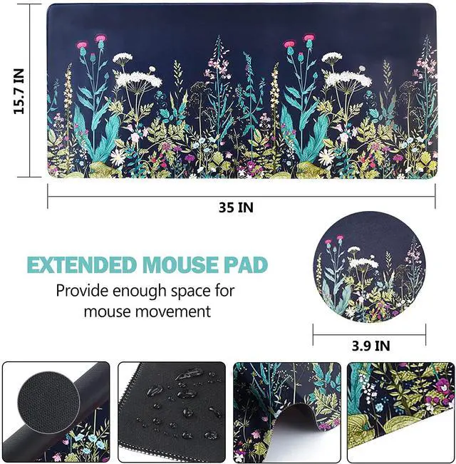 Large and Extended Size. The size of this mouse pad is 35 15.75 inch which is large enough to fit your keyboard mouse laptop phone tablet and other item on the desk keep your desktop layout simpler and clearer. Besides this mouse mat can also be used as a desk pad writing pad. Durable Stitched Edges. The large gaming mouse pad is designed with high stretch silk precision locking edges to avoid wear deformation and degumming in prolonged use. And the edge seams at the edge are flat no discomfort to your wrists and hands.