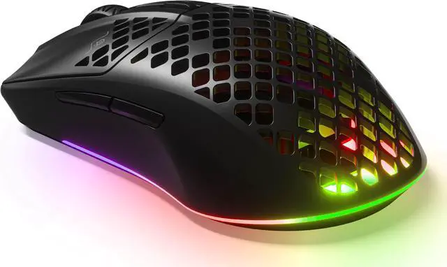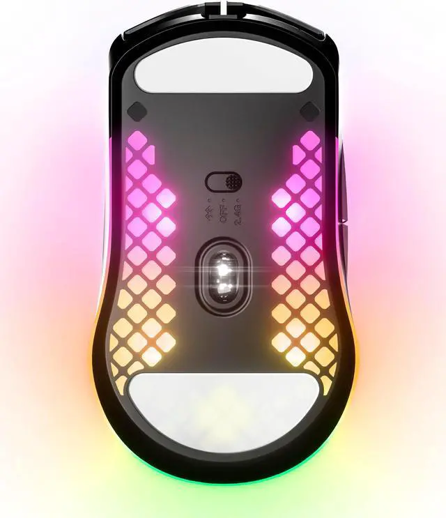 Product Name Aerox 3 2022 Edition Wireless Optical Gaming Mouse with Ultra Lightweight Design Brand SteelSeries Model Number 62612 Color Onyx Mouse Type Gaming Lighting Type RGB Customizable Lighting Yes Product Weight 72.57 grams Wireless Yes Wireless Connectivity Bluetooth, Radio Frequency (RF) Operating System Compatibility Mac, Windows Plug and Play Operation Yes Interface (s) Bluetooth, RF ( 2.4 Ghz/Low Latency) Features Ultra Lightweight When quick movements and large swipes matter, Aerox 3s super light design allows for faster and more accurate reaction times in game. 200 Hour Battery Life Engineered specifically for optimized power consumption, the Aerox 3 Wireless battery delivers up to 200 hours of continuous use without sacrificing performance and weight.