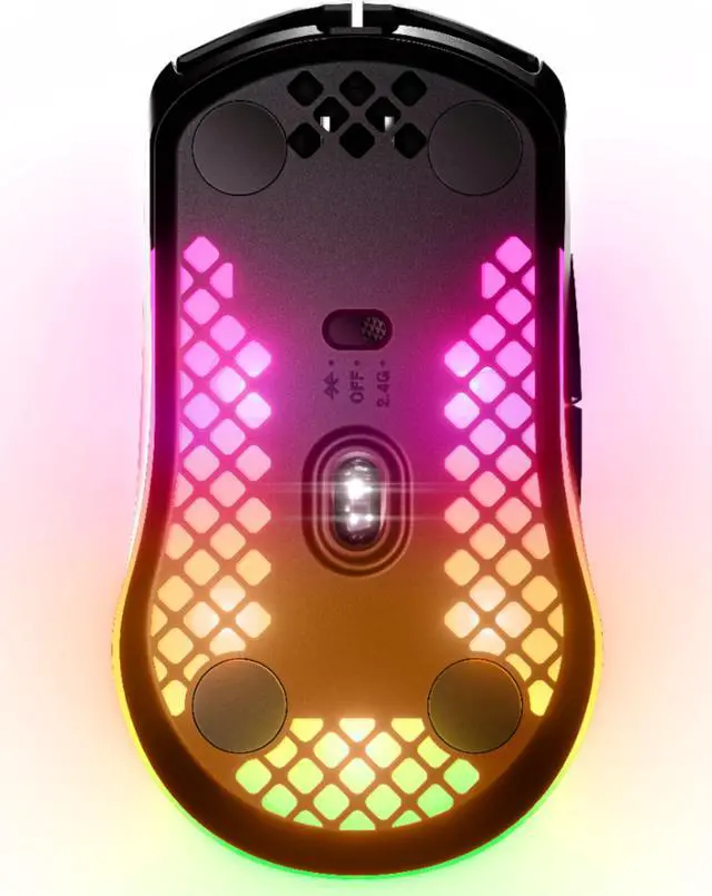 Product Name Aerox 3 Wireless Optical Gaming Mouse with Ultra-lightweight Design Brand SteelSeries Model Number 62604 Color Black Mouse Type Gaming Lighting Type RGB Product Weight 65.77 grams Features 66g Ultra-lightweight When quick movements matter and picking up your mouse can get tiring, Aerox 3 Wireless super light design allows faster and more accurate reaction times in game. TrueMove Air Sensor A new custom true 1-to-1 tracking sensor co-developed with PixArt specially for wireless performance. This 18, 000 CPI, 400 IPS, 40G optical sensor delivers the speed and accuracy needed to improve your gameplay.
