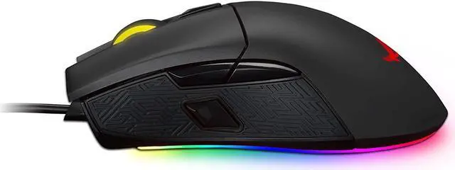USB wired optical gaming mouse designed to fit all grips with clickable scroll wheel, DPI switch, and quick-release micro-USB