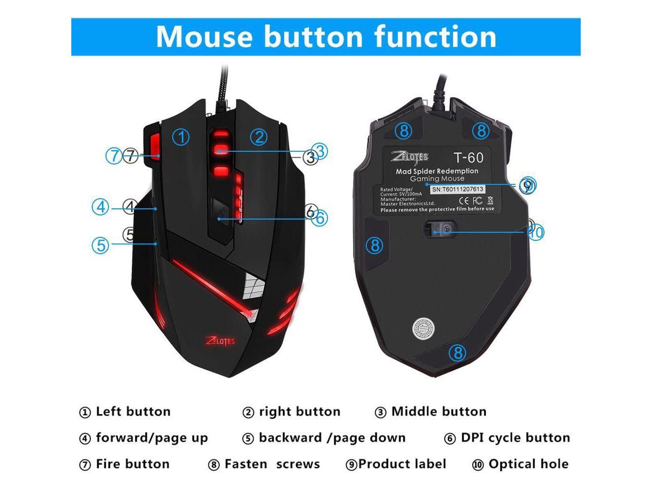 - Comfortable: DPI and Polling Rate setting are closely related to the game performance, T-60 provides extreme stability while gaming. Ergonomic design ensures comfortable fit including fingertips and claw style grip,long-term use without fatigu.