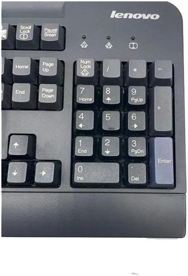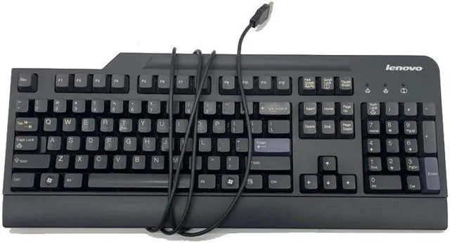 The Lenovo KB-1021, also known as the Preferred Pro USB Keyboard, is a wired keyboard designed for comfortable and efficient typing. It features a standard QWERTY layout with 104 keys, including three Windows keys. The keyboard offers a solid mechanical feel, adjustable tilt with three levels, and a detachable rubberized palm rest for enhanced comfort during extended use. Its dimensions are 17.8 inches in width, 7.3 inches in depth, and 1.3 inches in height, with a 6-foot USB cable providing ample flexibility for various workstation setups. The keyboard is compatible with Linux, Mac, and Windows operating systems.