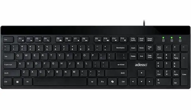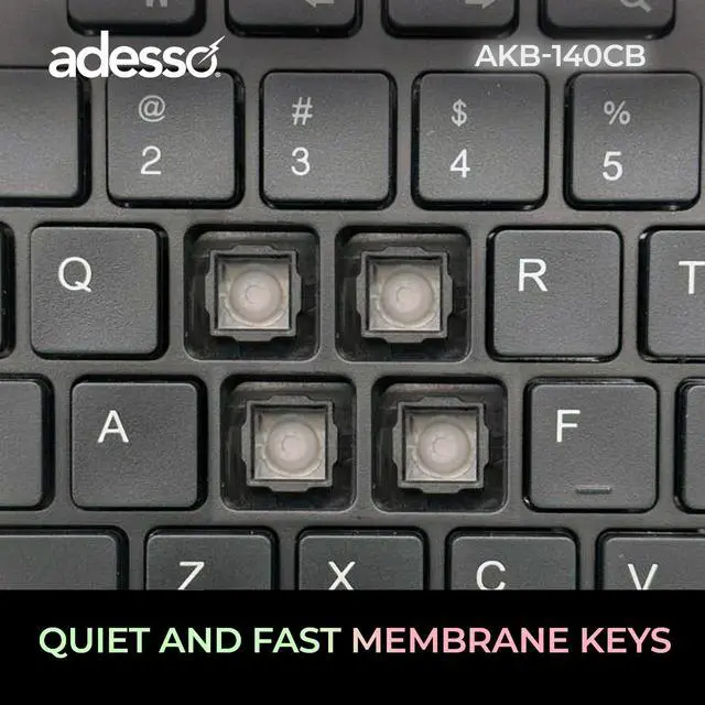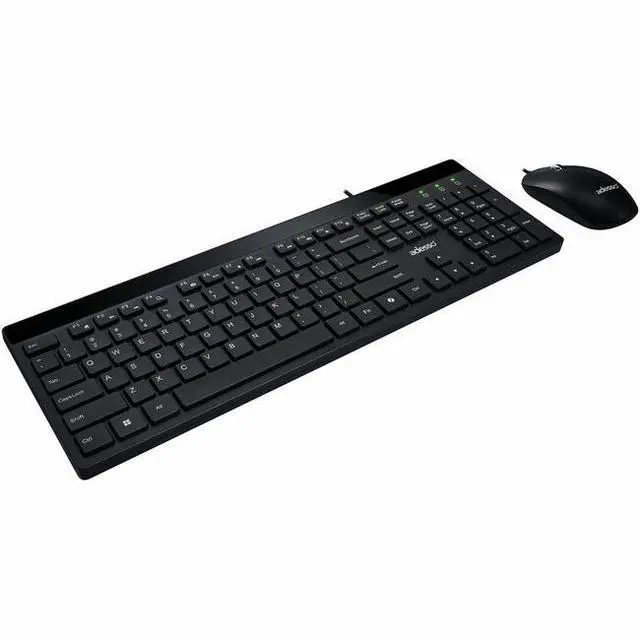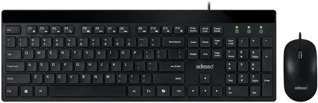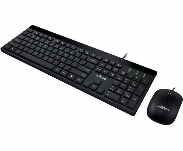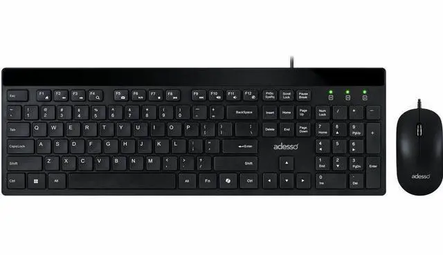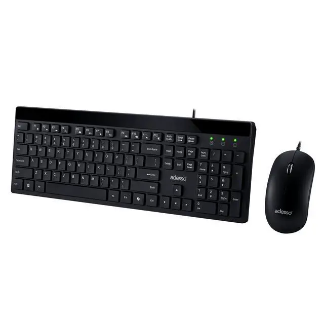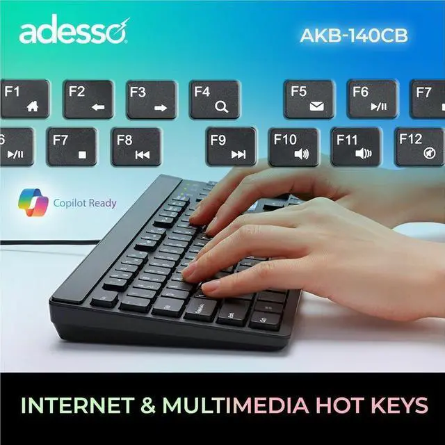 The Adesso AKB-140CB desktop keyboard and mouse combo delivers a complete wired input solution designed for office professionals, students, remote workers, and home computer users who value quiet operation and functional convenience. This full size USB keyboard features a 104-key US layout with low profile membrane keys and quiet switches that produce minimal typing noise, creating an ideal solution for shared office environments, open workspaces, libraries, and home offices where sound reduction matters. The integrated CoPilot AI hotkey enables instant access to Microsoft Copilot on compatible Windows 11 systems, streamlining your interaction with AI assistance tools.