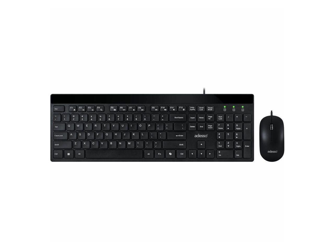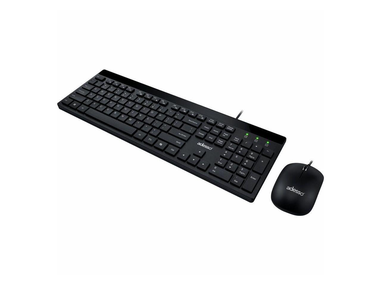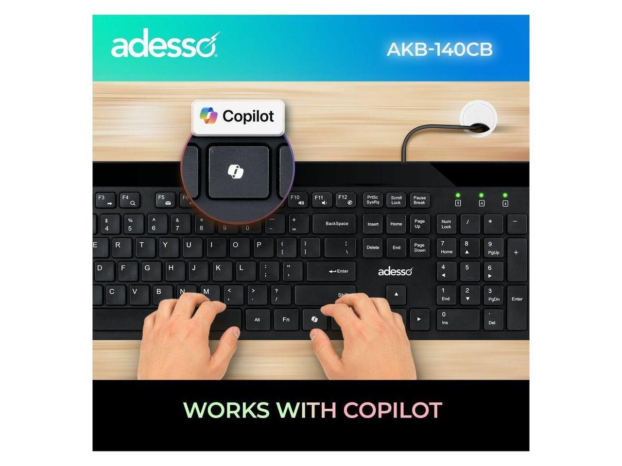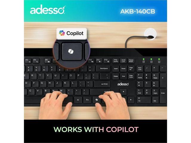 Adesso AKB-140CB Wired USB Keyboard and Mouse Combo with Copilot AI Hotkey Low Profile Membrane Keys Quiet Switch 104 Key Full Size Optical Mouse for Windows MacOS Office Home Computer