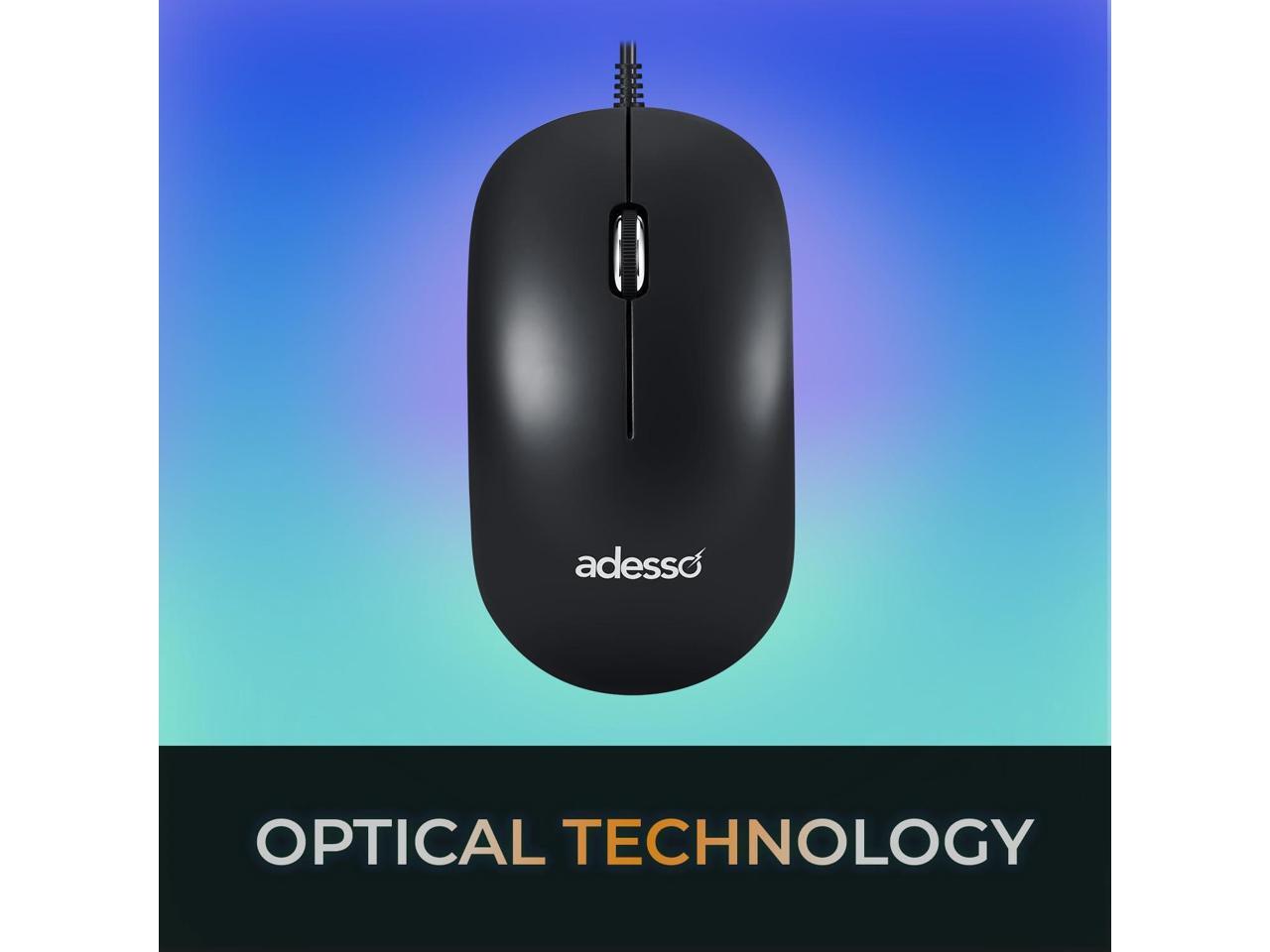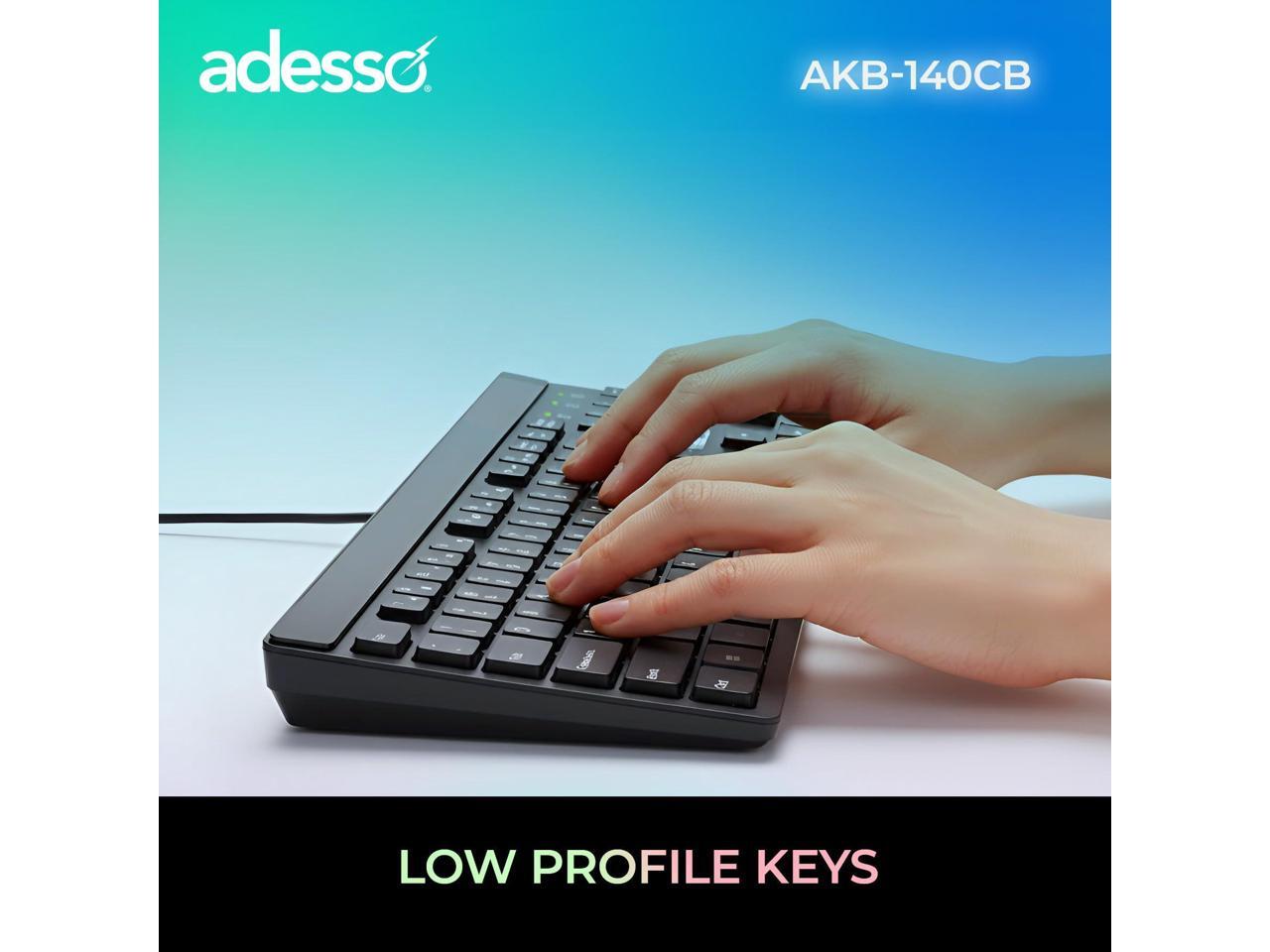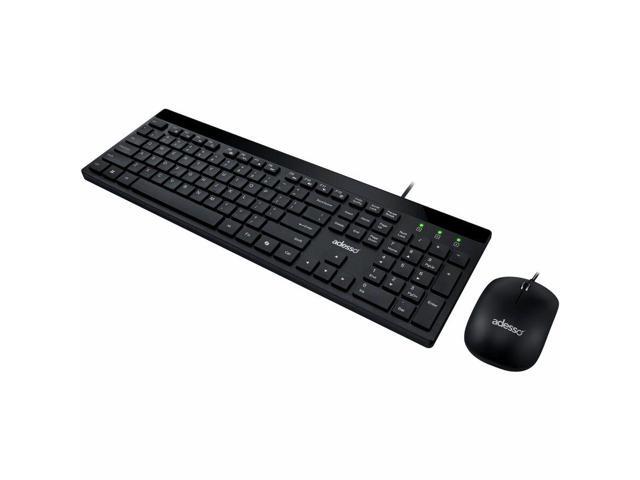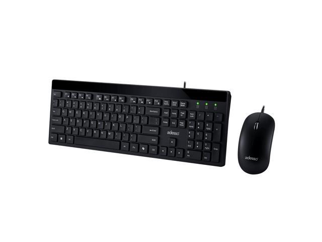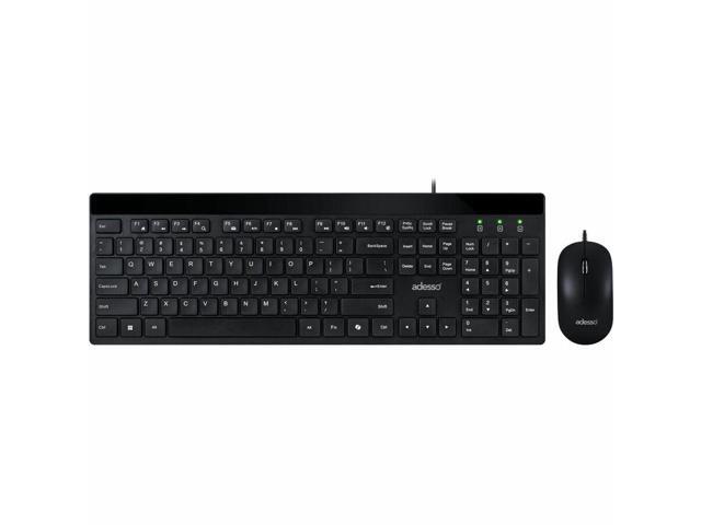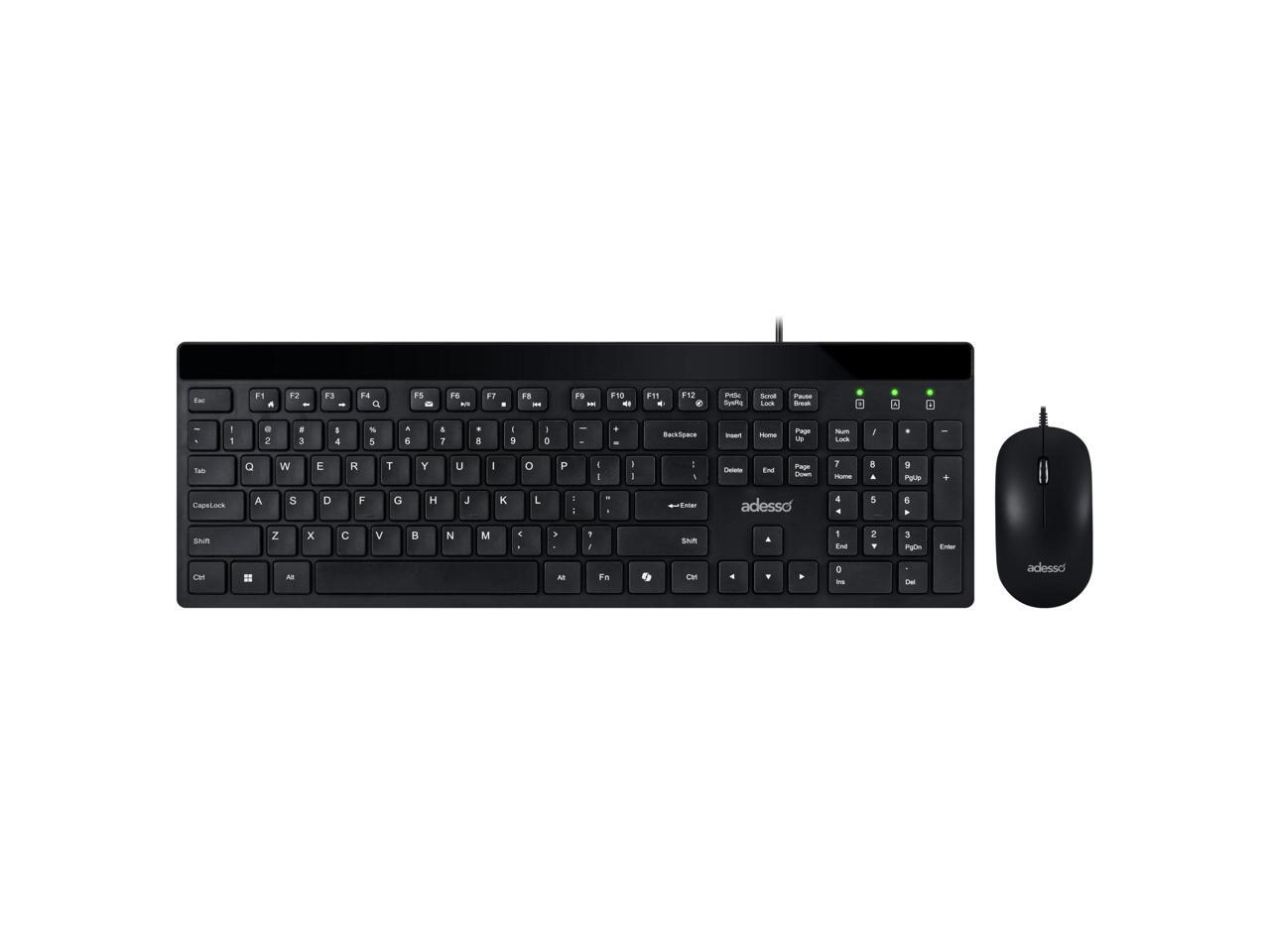 Adesso AKB-140CB Wired USB Keyboard and Mouse Combo with Copilot AI Hotkey Low Profile Membrane Keys Quiet Switch 104 Key Full Size Optical Mouse for Windows MacOS Office Home Computer