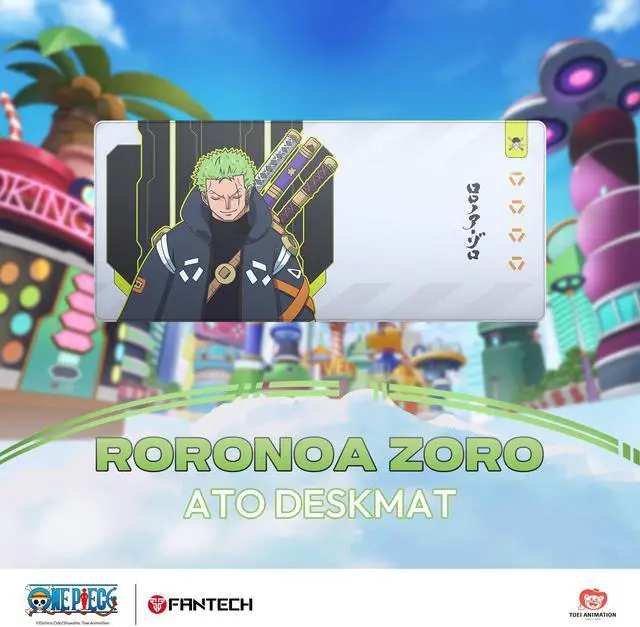 FANTECH MP905 Gaming mousepad, One Piece Edition, Wear-resistant, waterproof, and slip-resistant rubber mat with a stylish design, 16*3.3*3.3inch Deskmat, Zoro-Blue Gray
