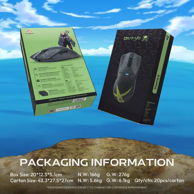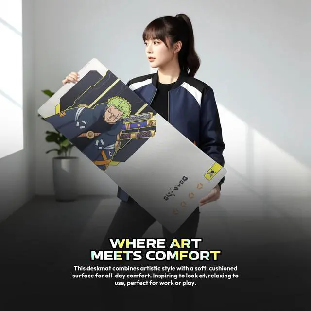 FANTECH One Piece Edition mouse+mousepad, Zoro-Deep Blue White sets, WG13E Tri-Mode Gaming mouse,MP905 Gaming Deskmat, Wear-resistant, waterproof, and slip-resistant rubber mat with a stylish design