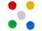Includes red, yellow, green, and blue tops along with a clear snap cap that holds a picture symbol on the device