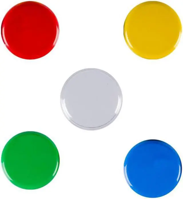 Includes red, yellow, green, and blue tops along with a clear snap cap that holds a picture symbol on the device