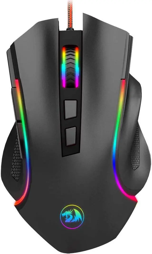 The Redragon M602-RGB Mouse features; Built-in Weight Tuning for the right balance, Anti-Skid Scroll Wheel, Durable smooth TEFLON feet pads for ultimate gaming control. 7 programmable buttons. Total 8 buttons. The Mouse works great with Redragon Gaming Mousepads & Keyboards. Comes with 6 foot, 3mm strong high-speed braided fiber cable and a gold-plated corrosion free USB connector for a reliable connection