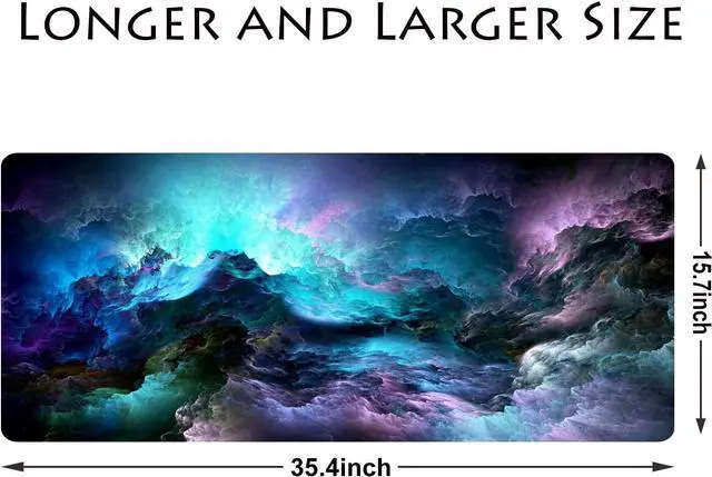 35.4 x 15.7 x 0.1IN Home accessories The Desk pad is designed to provide enough space for mouse keyboard and other desktop items when playing games or working The full desk mousepad can better protect your desktop it is a good desk accessories & workspace organizers. Super Smooth Surface and Non-Slip Rubber BaseThe Computer mat for desk's silky-smooth surface helps with high-speed movement and accurate positioning. The desk mats on top of desks with non-slip rubber backing provide a firm grip and prevent the gaming mouse pad from sliding around on the desk. Water-proof surface and Professional Stitched EdgeThe large mouse pad for desk has a waterproof coating to prevent damage from spilled drinks or other accidents.