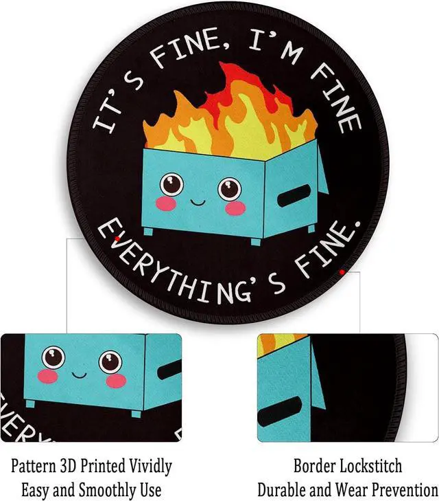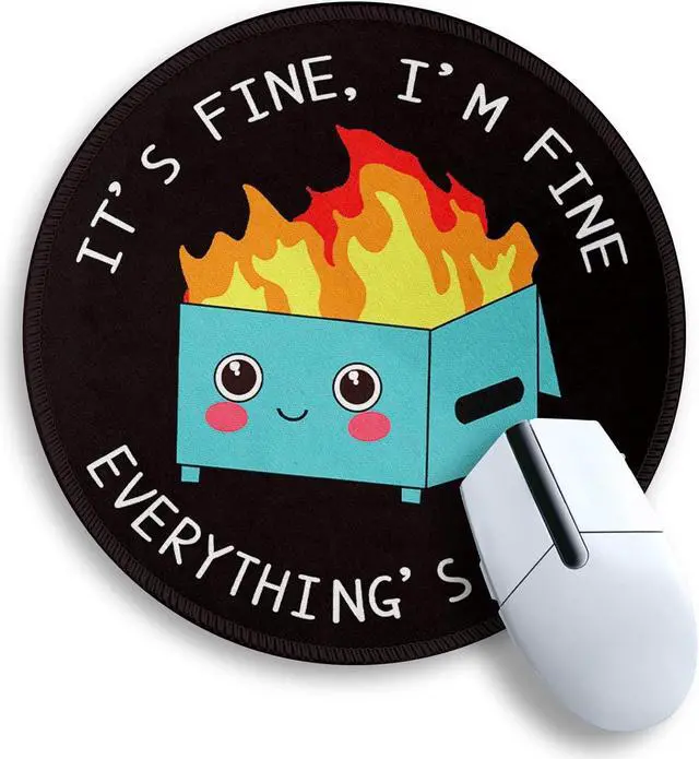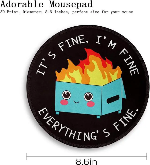 Novelty Mouse Pad: This cute mouse pad is designed with funny dumpster on fire arts: It's Fine I`m Fine Everything is Fine. The cute and funny mousepad will always bring more happiness and fun to your life. You will get tons of comments on itGreat