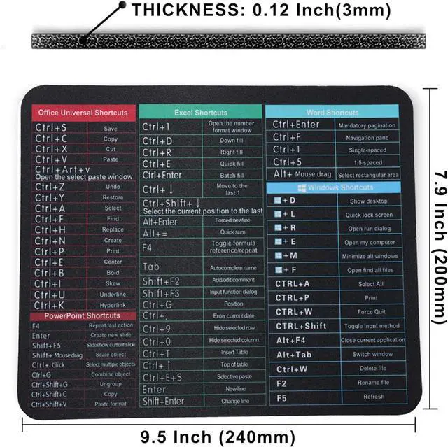 Mouse Pad Size 9.5 x 7.9 x 0.12 /240mm x 200mm x 3mm. This mousepad is the perfect fit for almost any workspace. With a thickness of 3mm it reduces the effects of uneven surfaces providing a unique blend of speed and control for your mouse making it ideal for any situation. Ultra Smooth SurfaceThe surface of this mouse pad is made of premium-textured high-quality lycra cloth that has undergone special treatment which provides accurate mouse movement and pinpoint accuracy. Works well with wired wireless optical and mechanical mice. Non-slip Natural Rubber BaseThe natural rubber base comes with anti-slip texture ensures the mouse pad stays firmly on desk providing stability and preventing any unwanted movement during gaming or work sessions.