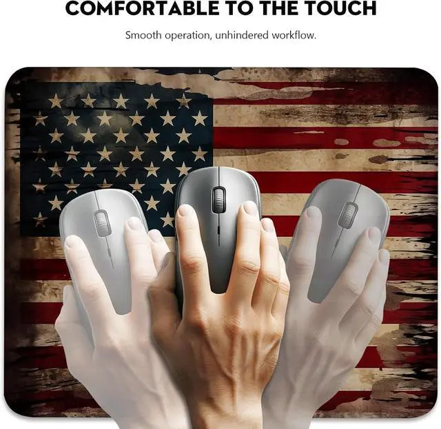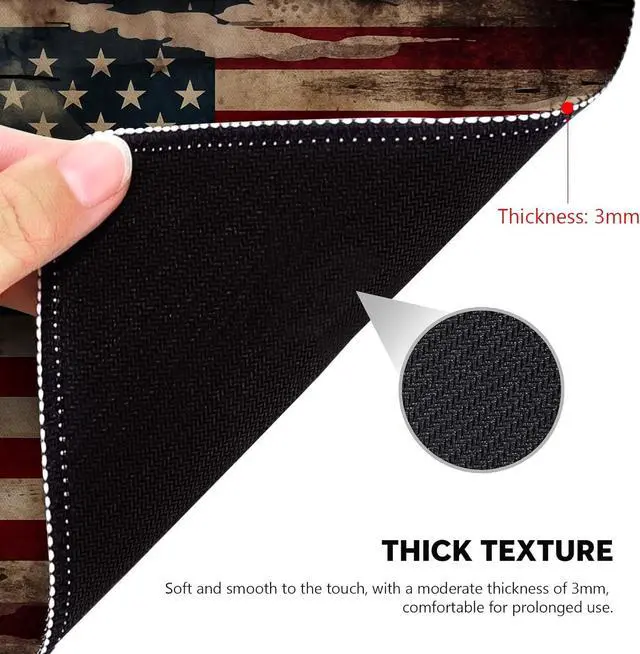 Show your patriotic spirit with our Vintage American Flag Mouse Pad featuring a distressed flag design for a touch of historic resilience. Measuring 10.2 * 8.3 inch this mouse pad offers ample space for your mouse to maneuver across a symbol of national pride. The 3mm thick pad provides a comfortable cushion for your wrist ensuring support through long hours of work or gaming. Edged with precision stitching the mouse pad is built to last preserving the integrity of the American flag design. The surface is optimized for mouse responsiveness making it suitable for tasks that require precision and a steady hand.