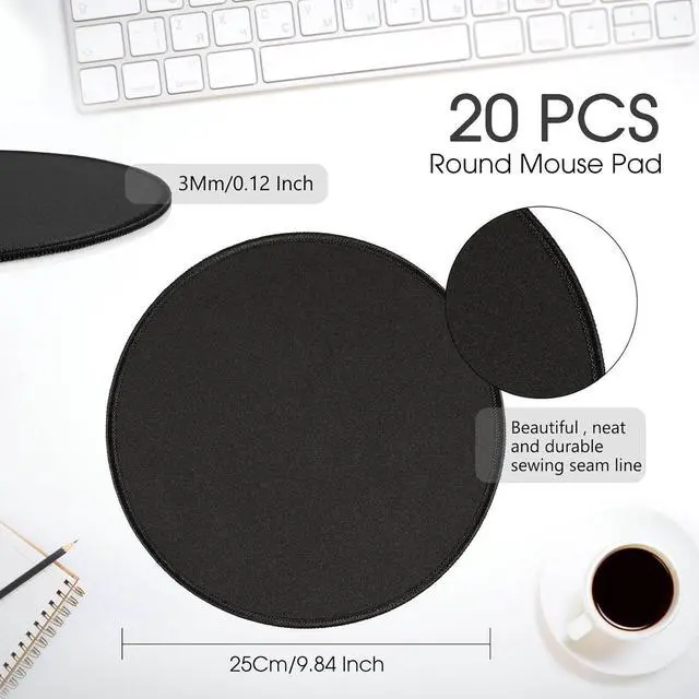 What You Will Get: 20 pieces of round mouse pads enough for you to use and replace; These mouse pads are about 9.84 x 9.84 x 0.12 inches/ 25 x 25 x 0.3 cm in size which will not take up too much space on your deskWaterproof
