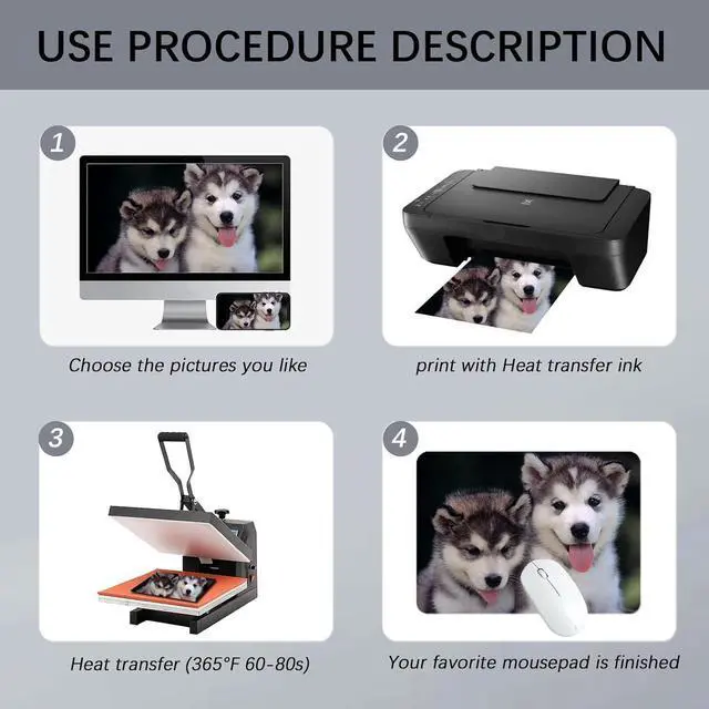 Product size: 9.5 x 7.9 x 0.12 inches (24x20x 0.3 cm)Scope of applicationSuitable for wired wireless optical mechanical and laser mouse can print any personal photo company logo and other images of your favorite promotions gifts personal mementos art displays etc. Production processCan print any personalized picture on white polyester fabric;