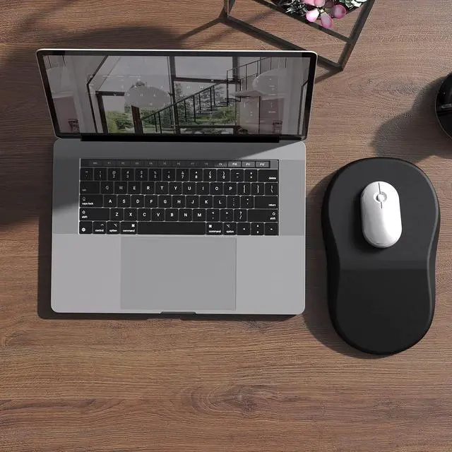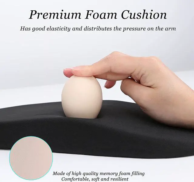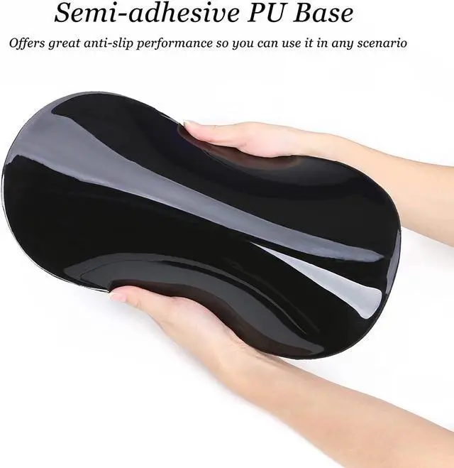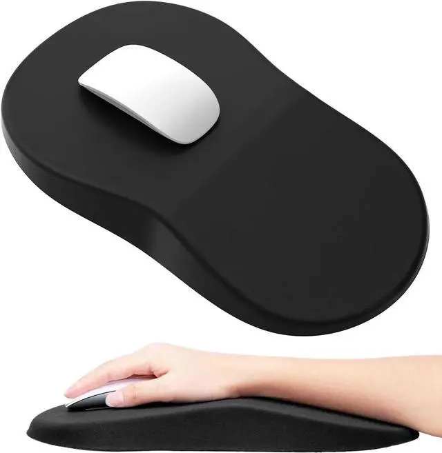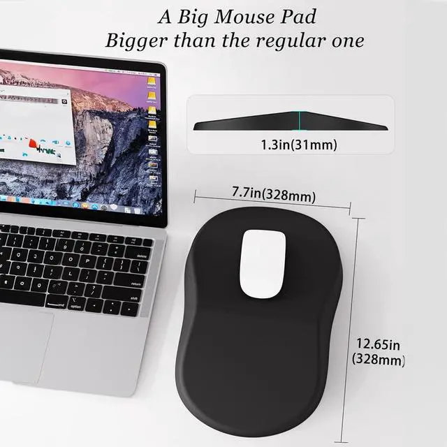 Ergonomic Mouse Pad-with 100% memory foam reduces strain through a tilted surface that maintains natural arm alignment while its arched design supports the wrist comfortably and helps prevent carpal tunnel syndromeSmooth Lycra fabric surface-ensures skin-friendly comfort seamless mouse gliding and precise tracking. Compatible with most mice typeswired wireless optical or mechanicalNon-slip Silicone Base- the bottom of the mouse mat is made of the silicone so that the pad can be fixed at any desktops. Moreover it is hard enough to be used on the bed couch or wherever you are workingIrregular Oval Shape-(approx. 12.9 x 7.7 x 1.2 )