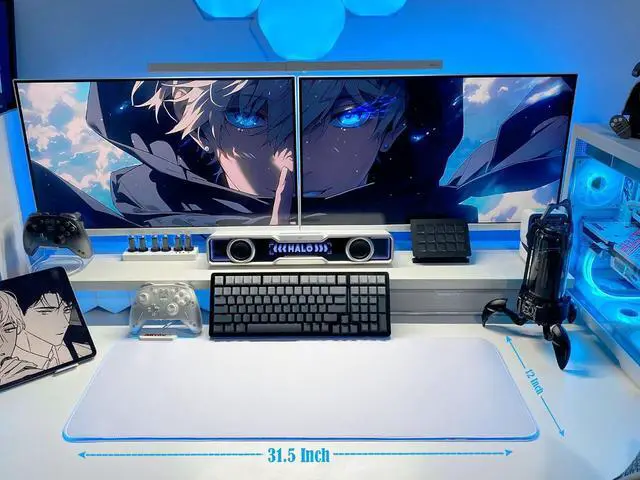 13 Lighting Modes Gaming Mouse Pad Super Glow Fiber provides a great RGB back lit effect. You can choose from 13 lighting modes: 9 static light modes and 4 dynamic mode. Large Size Gaming Mouse Pad at 31.5 x12 x 0.2 inch The gaming mouse pad will fit your mouse perfectly and provide enough mouse movement space suitable for all types of mice. Easy to use Plug & Play Gaming Mouse Pad This extended mouse pad is powered by USB plug and play no driver required. The control button of this mouse pad has been tested for 10 million times and is extremely durable. Just press it to choose the lighting mode you want. Press and hold about 3 seconds turn ON/OFF. And it has power off memory function remembers your last mode selection. Non-slip & Waterproof Gaming Mouse Pad The durable non-slip rubber base is designed to eliminate unwanted movement and provide a solid platform for eSports gaming. Waterproof coating surface effectively prevent accidental damage from spilled liquid. ULTRA SOFT & SMOOTH SURFACEDesign with superfine fiber braided material and allows more accurate mouse movement. Very comfortable when the wrist touches the surface Best idea for game or work.