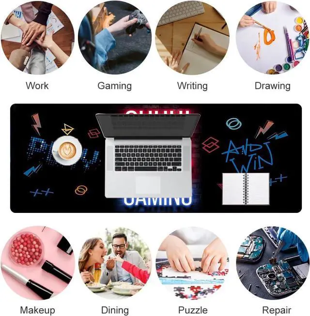 Large Mouse PadThe size of the oversized mouse pad is 31.5 x 11.8 inches (80X 30CM) with a thickness of 2mm/ 0.08IN. This mouse pad and keyboard pad are perfect for different office and gaming desktops. You can use it as a keyboard pad desktop pad or platform protector as needed. Cool Mouse PadThe gaming mouse pad features digital gaming elements such as game console controllers and headsets this cool extended mouse pad is a great decoration for your home dining table and desk. Ultra Smooth Surface and Anti Slip Rubber BaseThe large mouse pad of the keyboard and mouse is covered with soft and smooth fabric allowing the mouse to slide freely on its surface providing consistent and accurate control for your work or gaming.