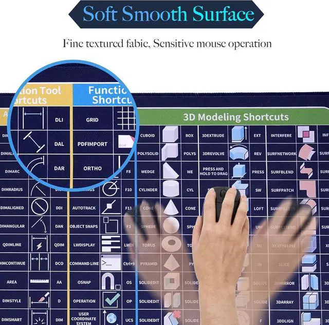 Wide compatibility: The mouse pad is compatible with various types of mice such as wired and wireless mice. The CAD Shortcuts cheat sheet Mouse Pad can abovisly improve the user's productivity efficiency. A special gift helping your friend family and partner succeed in school and in their career. Upgrade your CAD experience & skills with our exceptional Mouse Pad marked with a variety of CAD shortcut keys making it perfect for newcomers who are not yet familiar with CAD operations.