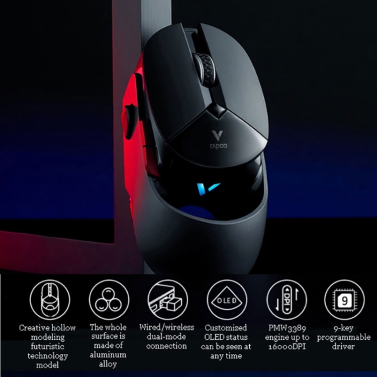 4. 800/1000/1500/2000/3000/8000/16000 DPI tracking engine, cyclic switching, smooth operation and accurate tracking