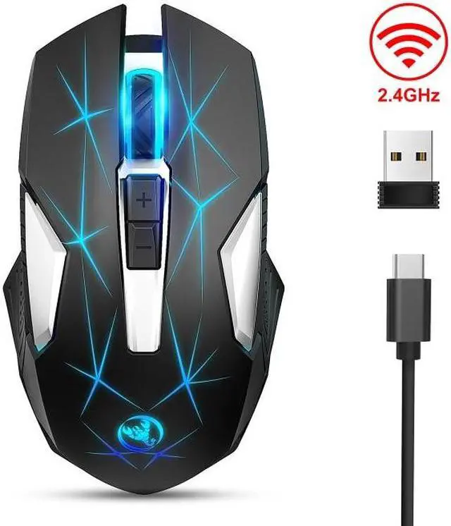 HXSJ T300 7 Keys 2400DPI 2.4G Colorful Luminous Wireless Mouse, Size:T300 Black (Black)