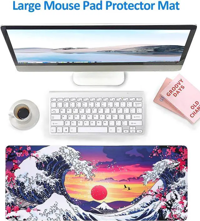 Enchanting Design: This gaming mouse pad xxl blends elements such as the Great Wave off Kanagawa Mount Fuji and sunsets. The unique pattern design adds an artistic touch to your office desktop.
