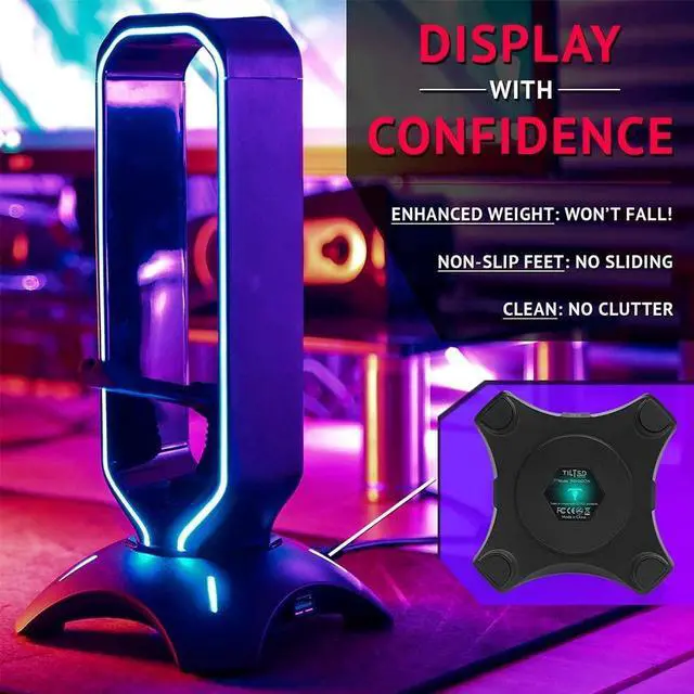 WON'T FALL OVER: The durable base with added weight and non-slip grips of the gaming headset stand provide optimum stability even during intense gaming, keeping your headphones safe at all times.