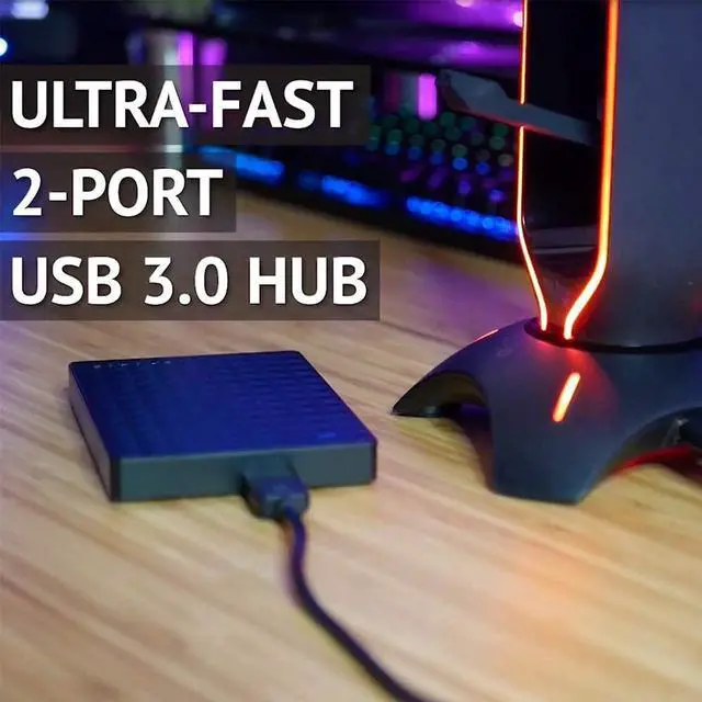 DATA HUB: With 2 USB 3.0 ports on the gaming headset holder, you can connect devices with up to 5GB data transfer speeds, which is perfect for gaming peripherals, keyboards, headsets, mice, external hard drives and flashdrives etc. THE FINAL PIECE TO YOUR GAMING SETUP: Enjoy an unexpected solution to a problem that you never knew you had; while giving your gaming station an edgy touch with Dynamic or Static RGB lighting (color cycling).