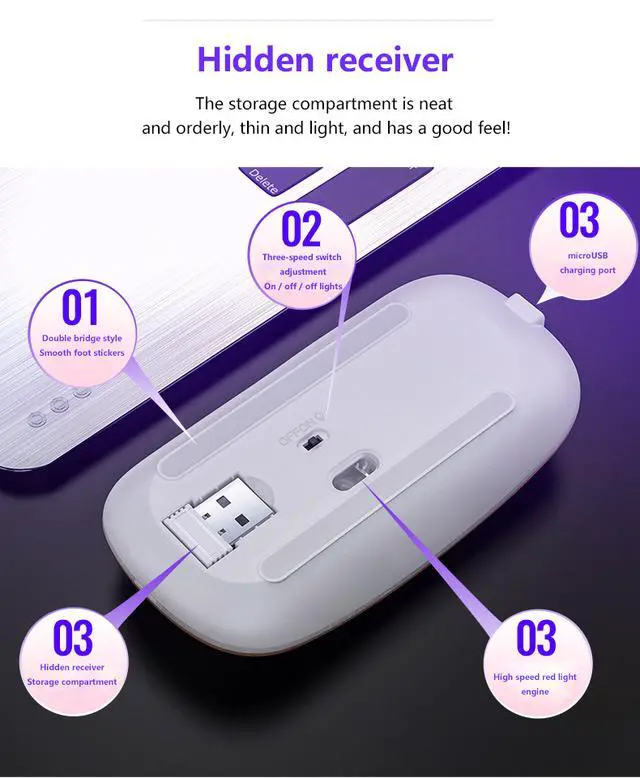 Colorful lights provide you fancy gaming environment; With switch at bottom to control the light and mouse on/off