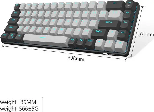 Blue Switch Mechanical Keyboard With all-metal panel and floating keys design, the keys of the tkl keyboard trigger sensitively and response fastly. All 68 keys have individual switches with full n-key rollover and anti-ghosting. Providing great durability and stable performance
