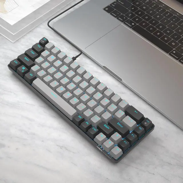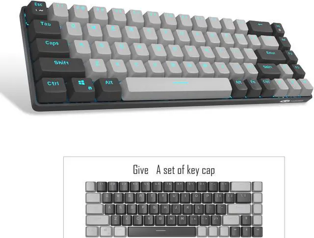 Compact 60% Keyboard The mechanical keyboard is 68 keys, a perfect size, to provide more space to your desktop and mouse movement